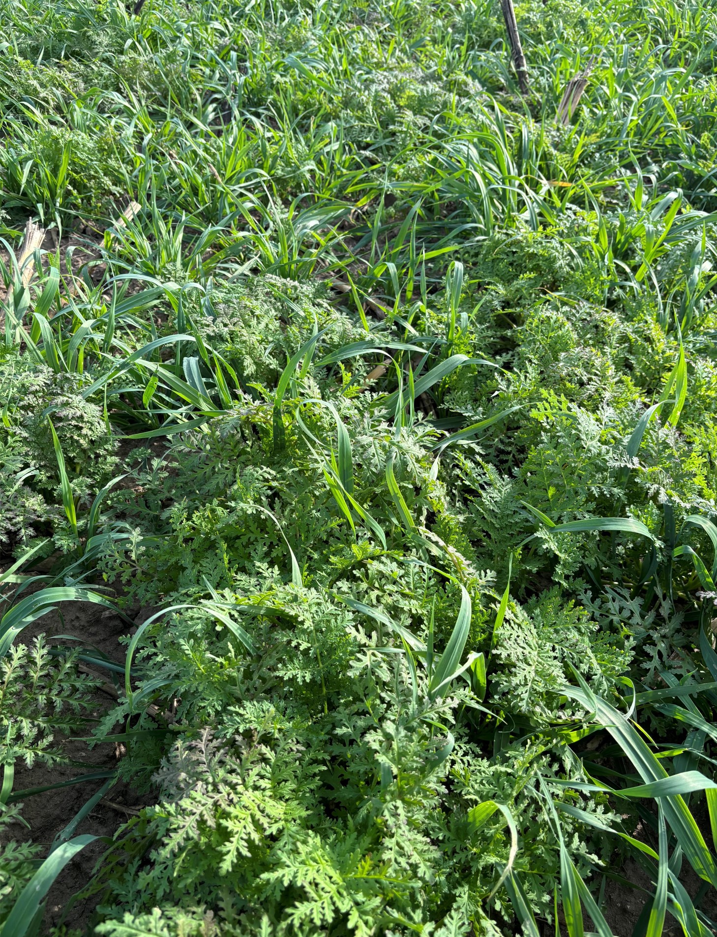 Cereal rye (above) releases allelopathic compounds that deter smaller seeded weeds from germinating.