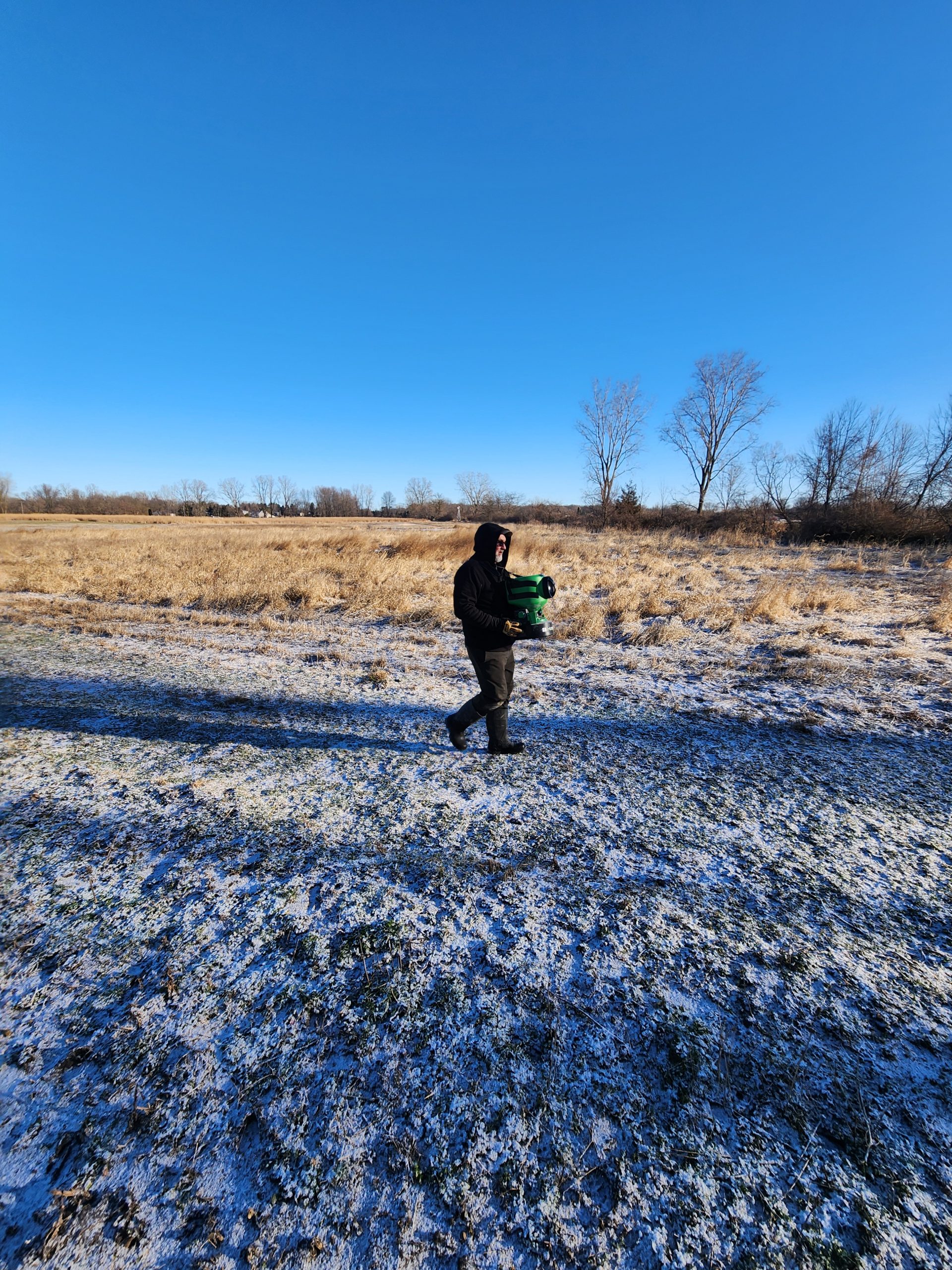 I tried out the new Hooyman 24V electric chest spreader yesterday frost seeding Gallant Red Clover into a Stamina White Clover/ Jumbo Ladino Clover mix at the MWZ plots.