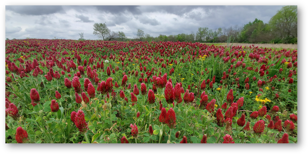 - Kentucky Pride Crimson Clover = 18,421 lbs./acre of green biomass