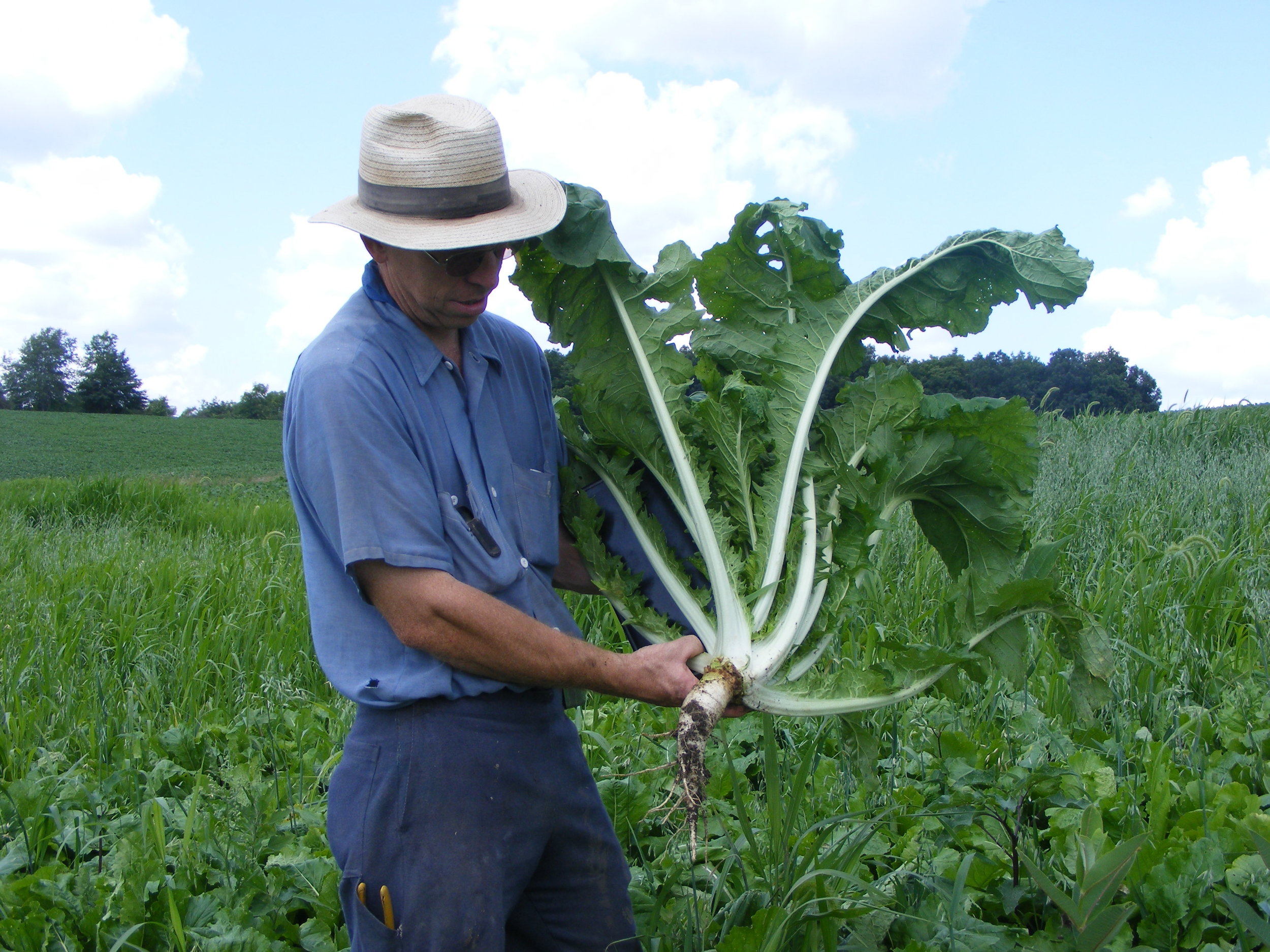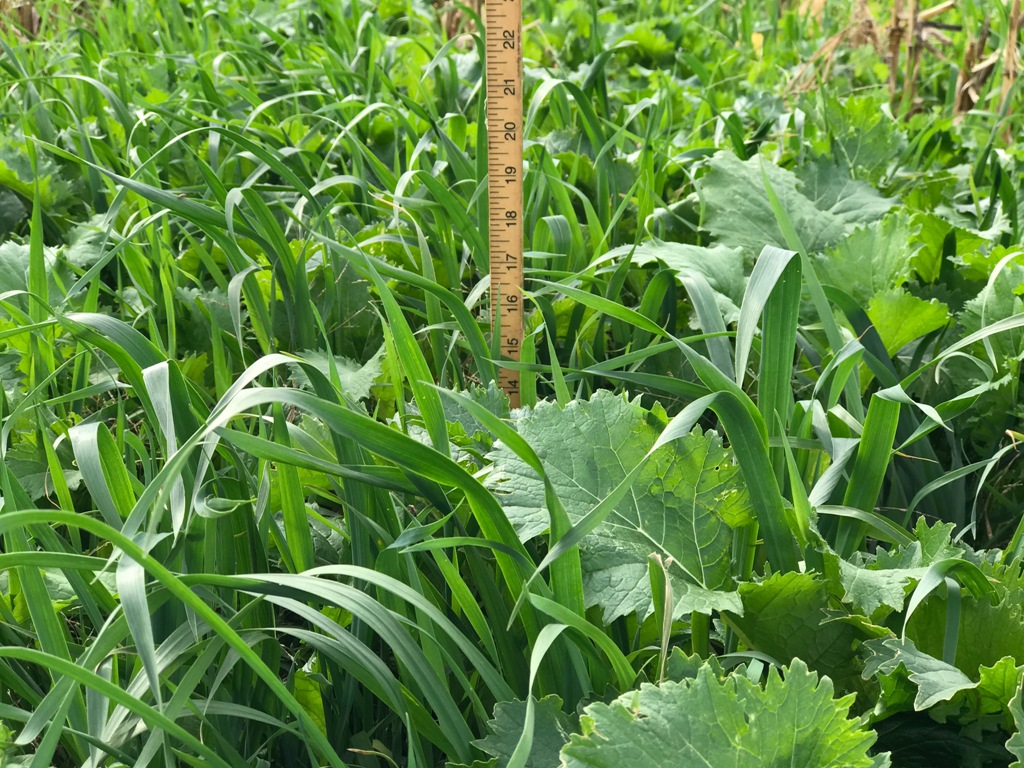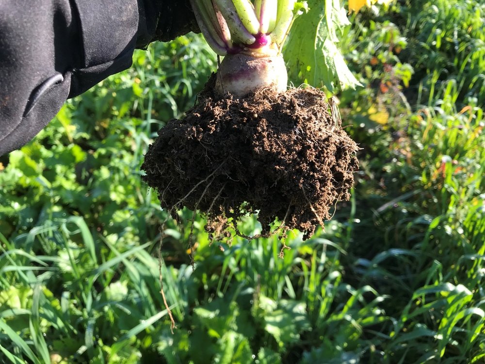 Turnips are an upright, cool season broadleaf that works well in cover crop mixes. They have leafy top growth, a bulb, and fibrous roots hairs. They tend to last longer in the fall when compared to radish and can often overwinter.