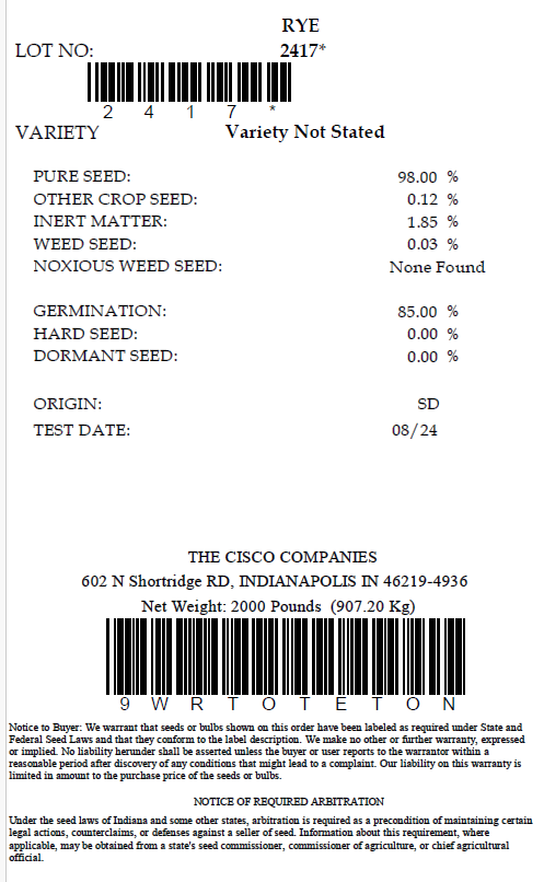 When it comes to buying a cereal grain cover crop, especially cereal (winter) rye, there is a temptation to choose with only price in mind.